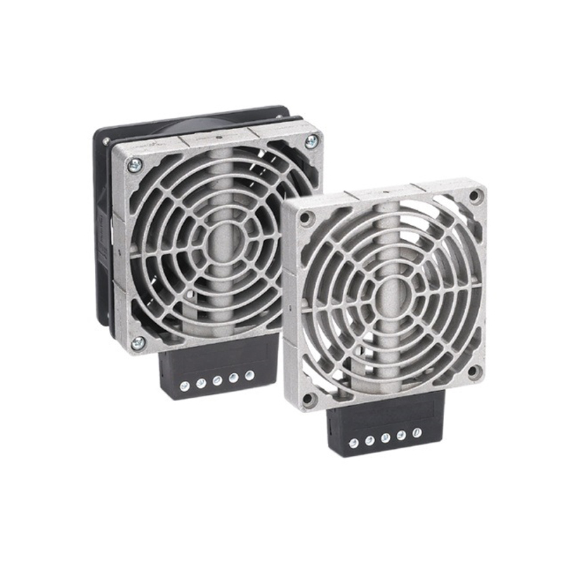 El termoventilador compacto de alto rendimiento evita la formación de condensación en sistemas de control o conmutación y proporciona una temperatura del aire interior distribuida uniformemente en los armarios. Este termoventilador está disponible sin ventilador (HV 031) y con ventilador (HVL 031).